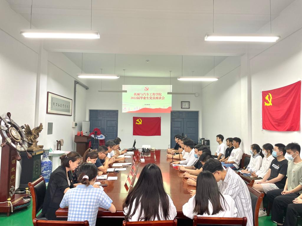 为加强毕业生党员思想政治教育,引导毕业生党员坚定理想信念,牢记党员使命,以良好的政治面貌开启人生新征程,tyc122ccVIP于6月16日晚在汽车实验楼408会议室组织开展2022届毕业生党员“最后一堂党课”暨党员座谈会。公司党委书记李忠晓、党委副书记董虎、学工办主任兼团委书记王成、毕业生辅导员、各党支部书记及2022届本科、研究生毕业生党员代表30余人参加会议。公司党委副书记董虎主持会议。