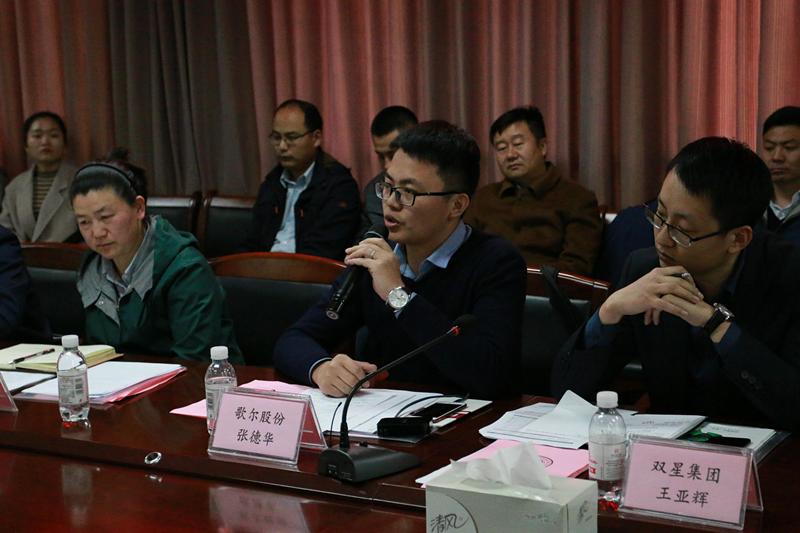 随后,会议进入企业专家及代表发言阶段,各专家及代表针对培养方案,围绕培养目标的合理性,专业培养的职业领域、职业定位、职业能力,毕业生应具备的素质和能力,课程体系的设置及其合理性等方面建言献策。佳友模具逄玉红总经理指出,随着产品质量要求增加,模具复杂程度日益增加,在机械设计制造方面用人要求也增加,本科专业课程需要冲破局限,设置更加尖端的塑料CAE分析及冲压有限元分析等课程;歌尔股份有限公司张德华经理在实践课程的安排方面提出个人建议,比如在歌尔建立创新就业实践基地,为员工设立为期3-5天的短期教学实践课程,了解企业文化,设置职业生涯规划等课程,将企业课题作为本科生毕业设计题目等;双星集团王亚辉经理建议设置质量管理、经济生产等选修课程;万宝压缩机谢宏伟经理提出,现在企业拥有许多国外客户,本科生与国外客户直接交流和沟通能力较弱,建议本科生加强对专业英语的学习;豪迈集团刘力玮经理提出通过设置“工程师进校园”等形式的讲座,使公司与企业两方紧密合作从而实现本科生的培养目标。其他企业代表也纷纷发言,提出较有建设性的意见。