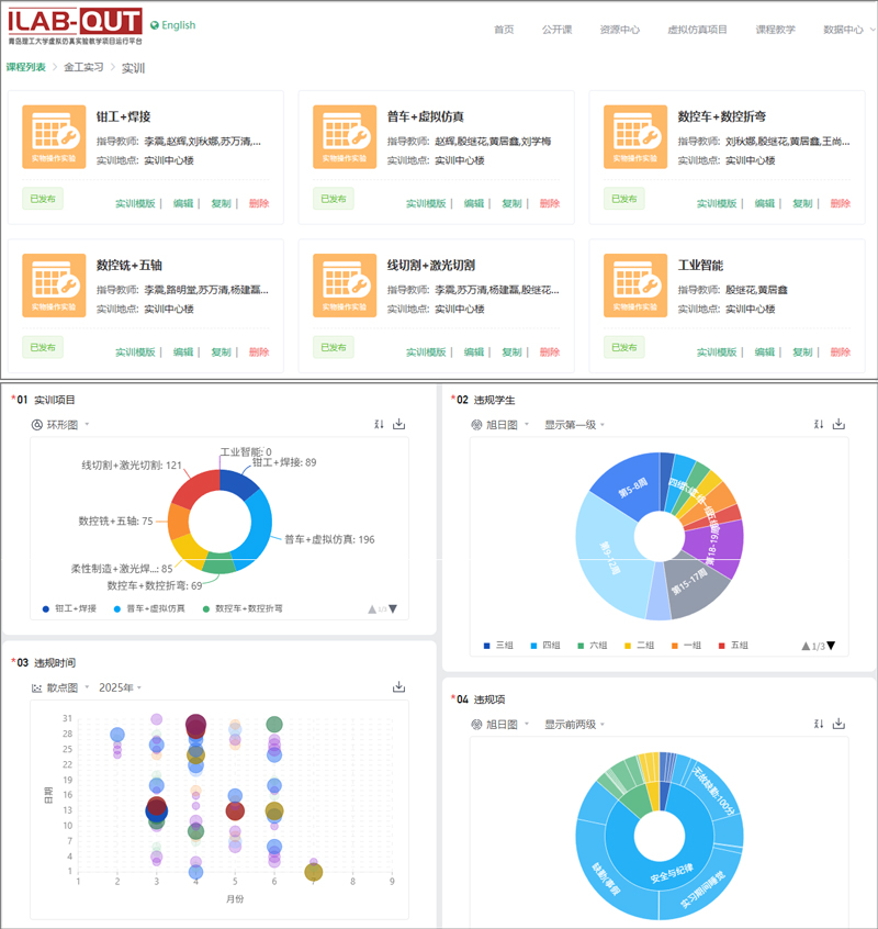 与此同时,为切实构建实训教学“数智化”管理闭环,工程训练中心深度梳理并量化了传统实操实训项目的考核标准与扣分规则,使之更客观、精细、可追溯,在充分利用公司“智慧理工”统一身份认证系统及校级虚拟仿真实验教学平台资源基础上,创新推出“青理工·匠造π”一码通管理工具,实现了对员工实训全过程中安全纪律、操作规范及创新总结的全程数字化跟踪与管理,显著提升了实训教学的管理效率以及员工考核的科学性和透明度。