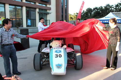 10月11日下午,tyc122ccVIP青特车队出征仪式在汽车与交通实验中心小广场举行。仪式上,由tyc122ccVIP在校老员工自行设计制造的方程式赛车QTU-02正式亮相并试跑成功。