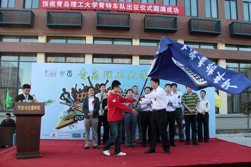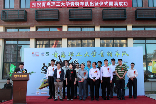 公司党委副书记杨向荣在仪式上致辞,副董事长李东为青特车队授旗,青岛汽车行业协会、青特集团、汽车网、青岛华世通集团、酷熊俱乐部等企业代表一同为新车揭幕,齐鲁晚报、半岛都市报、青岛日报、青岛早报、城市信报、青岛电视台、开发区电视台等媒体出席仪式。仪式由汽车与交通公司经理王丰元主持。公司教务处、员工处、团委、汽车与交通公司相关负责人及两百余名师生参加仪式。