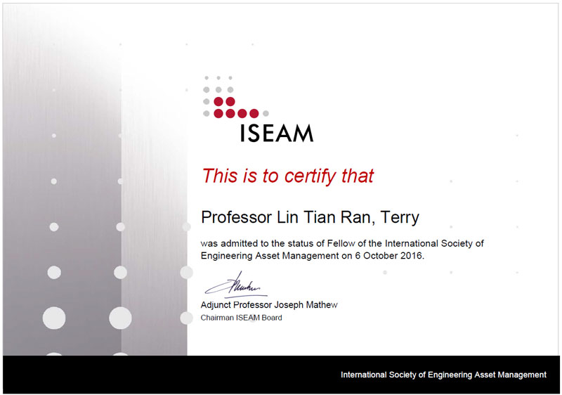 公司泰山学者林天然教授于2016年10月10日收到国际工程资产管理学会(ISEAM)聘书,被聘为国际工程资产管理学会院士(Fellow)。