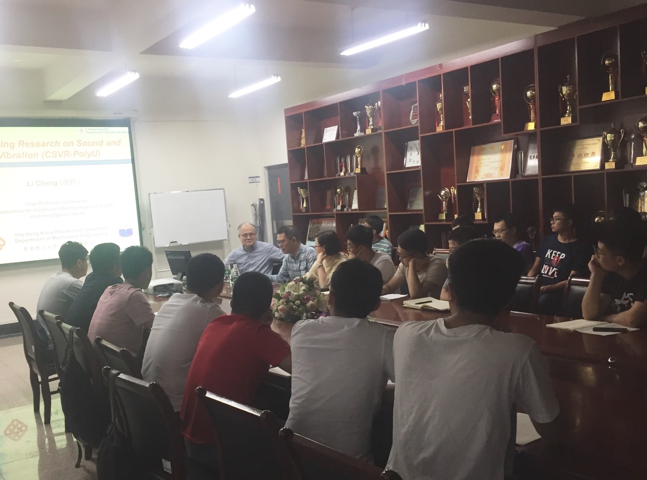 讲座期间,成教授首先对香港理工大学机械工程系的研究团队、研究覆盖领域及研究的科学定位进行了简单介绍;接下来成教授就气动声学与结构声学, 建筑与环境噪声,计算方法,动力学、振动与控制,嵌入式结构健康监测,流体-结构-声音相互作用,一般声学七个方面做了详细讲解;在一番仔细讲解后,成教授还与员工进行了现场交流,并耐心解答同学们提出的相关问题,互动中让员工更加深入到讲座内容中。