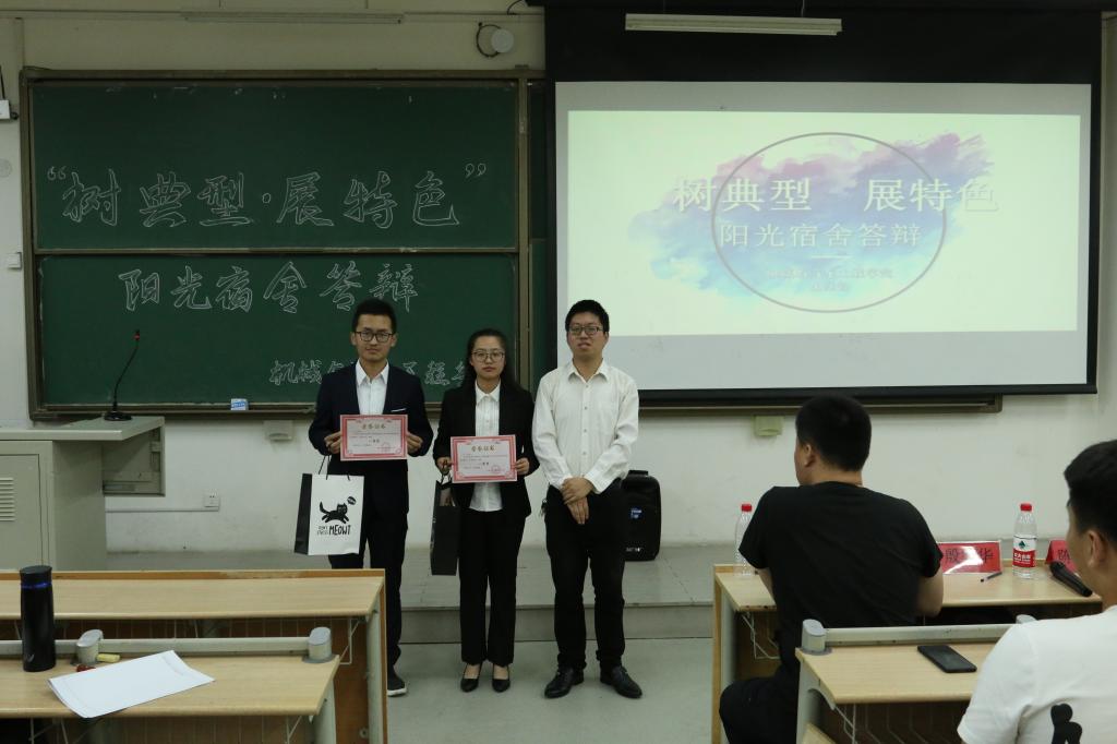 会议开始,殷宗华提出宿舍文化建设是校风学风建设的重要内容,对员工人生观的形成、综合素质的培养有着重要的影响,希望同学们能在本次活动中充分展示本宿舍的特色和风采。本次答辩活动共有15个宿舍参与,答辩人员以PPT的形式分别从宿舍概况、宿舍学风、宿舍卫生、宿舍获奖等方面展示本宿舍风采,部分宿舍还辅以视频、音乐,充分展现丰富多彩、团结和谐的宿舍生活,在整个答辩过程中,答辩的同学举止大方、陈述流利,精彩表现使答辩现场高潮迭起,在全面展示宿舍建设成果的同时,也得到了现场师生的一致好评。最后,殷宗华对本次活动作总结,他表示宿舍之间应该交流互鉴,携手共进,创建保持良好的舍风。经过综合评定,最终获得一等奖的宿舍为4#522、9#535,获得二等奖的宿舍为6#319、4#629、4#713,获得三等奖的宿舍有6#310、4#720、9#621、6#211。其中4#522、9#535被评为学风优胜宿舍;6#319 被评为文艺优胜宿舍;6#211、9#621等宿舍被评为体育优胜宿舍;4#720、6#310 被评为科创优胜宿舍;4#713、4#629 被评为卫生优胜宿舍。
