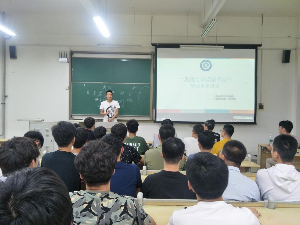 2019年6月20日,tyc122ccVIP“我的大学说给你听”2019届毕业感悟分享会在主教楼B126召开,2015级优秀毕业生代表李帅、李虎、王志浩、孟庆恩、王昌利作为考研、考公、就业的典型代表参加本次分享会并作主讲人。会议由张翠芳主持,2017级机械、材料专业员工代表共100余人参加。