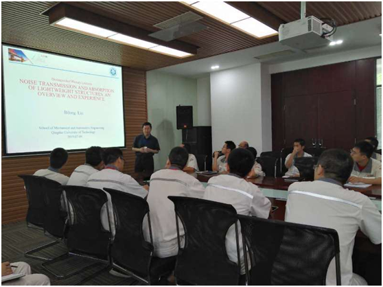 刘碧龙教授曾获得中国科公司优秀百人(2013)、中国科公司特聘研究员(2016)等称号,他曾长期担任中国科公司噪声与振动重点实验室声学材料与结构研究方向学术带头人,承担过包括国家973课题在内的各类科研项目。部分研究成果在战略型海洋装备和大型风洞工程中得到了应用。刘碧龙教授2018年获聘山东省泰山学者特聘教授,组建了声学技术与智能控制科研团队(图三),团队以噪声与振动控制为主线,围绕低频宽带声学材料结构、湍流与结构耦合噪声、主动噪声控制等方向开展研究。在湍流边界层作用下结构振动与声辐射理论、低频吸声结构、主动噪声控制、高性能声学器件、车辆悬架主动控制、疲劳寿命分析等技术方向上形成研究特色。同时,团队积极服务当地企业,与中车四方、海信日立等大型企业建立了合作关系(图四和图五)。(撰稿:李敏,审核:刘碧龙、郭峰)