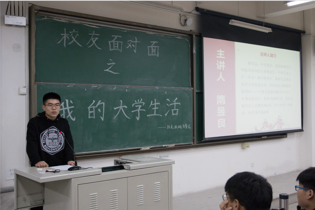 为更好的推进“精英培育计划”,促进员工学业、职业发展,助力员工实现梦想,11月24日下午,tyc122ccVIP在B135教室举办了以“我的老员工活“为主题的”卓越员工面对面“分享会。此次分享会由2014级员工隋昱良和孙伟主讲,2018级辅导员徐卫晓及200多名机械专业的员工参加此次分享会。