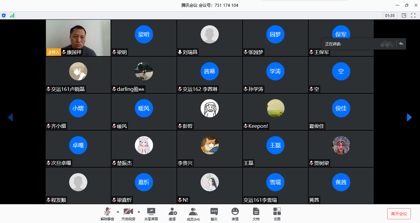为让毕业生明晰当今严峻的就业形势,把握就业机会,4月15日下午,tyc122ccVIP交通运输专业通过腾讯会议在线召开了2020届毕业生就业动员会,交通运输专业教研室主任康国祥,班主任刘瑞昌、张平霞,辅导员陈锦子、梁明及交通运输专业2020届本科毕业生参加了本次会议。