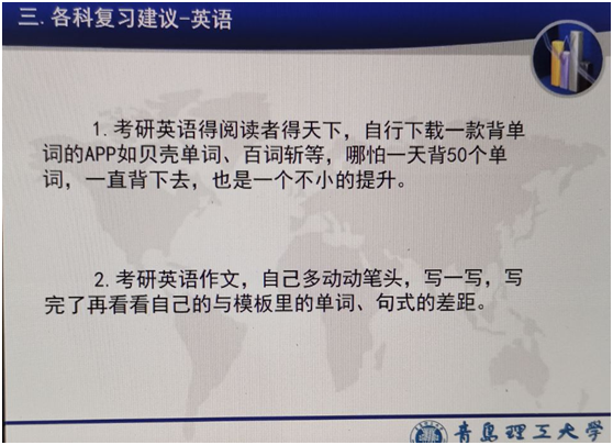 就业或是考研是大四生的必经选择,马佳兴的演讲为员工们分享了考研的经验。马佳兴总结了“质量比速度更重要”“基础不牢,地动山摇”等经验,并根据不同的科目总结了不同的复习方法。她以372分报考中国石油大学,在考研方面的经验给大家提供了宝贵的经验。