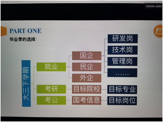 任则归作为格力的员工以自己的经验分析了企业招聘的流程,详细介绍了春招、秋招与招聘流程,用幽默质朴的语言耐心的解答了同学们的疑惑,为员工将来职业道路规划提供了帮助。