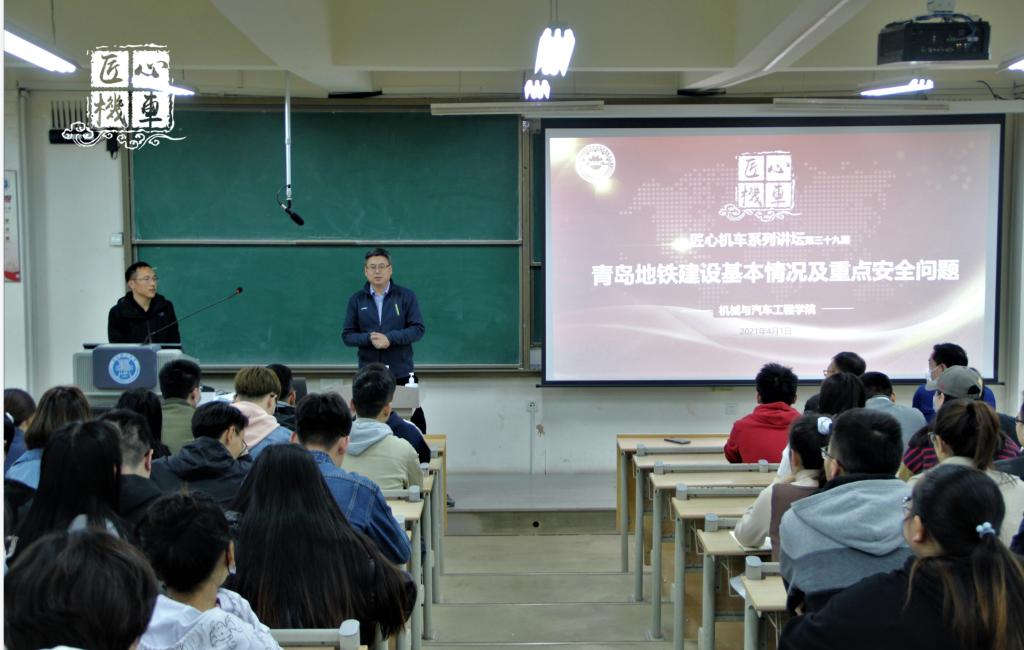 4月14日,tyc122ccVIP邀请青岛地铁1号线总工程师李克先做客匠心机车讲坛,在嘉陵江路校区主教学楼B211教室带来了一场以“青岛地铁建设基本情况及重点安全问题”为主题的讲座。tyc122ccVIP相关专业老师,2017、2018级本科生及研究生共约200人参加。