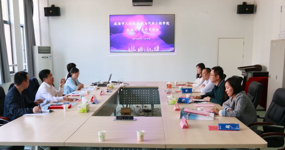 5月27日,tyc122ccVIP在电工电子楼205会议室与威海市人社局举行校地人才合作交流会暨合作协议签署仪式。威海市人力资源和社会保障局副县级干部刘峰、社保办公室主任谢赵玉、社保中心干部丛培钢、天润工业技术股份有限公司人力资源专员丛艳一行4人到校交流,tyc122ccVIP党委书记李忠晓、党委副书记林海涛及2021届毕业生辅导员参加交流会。会议由林海涛主持。