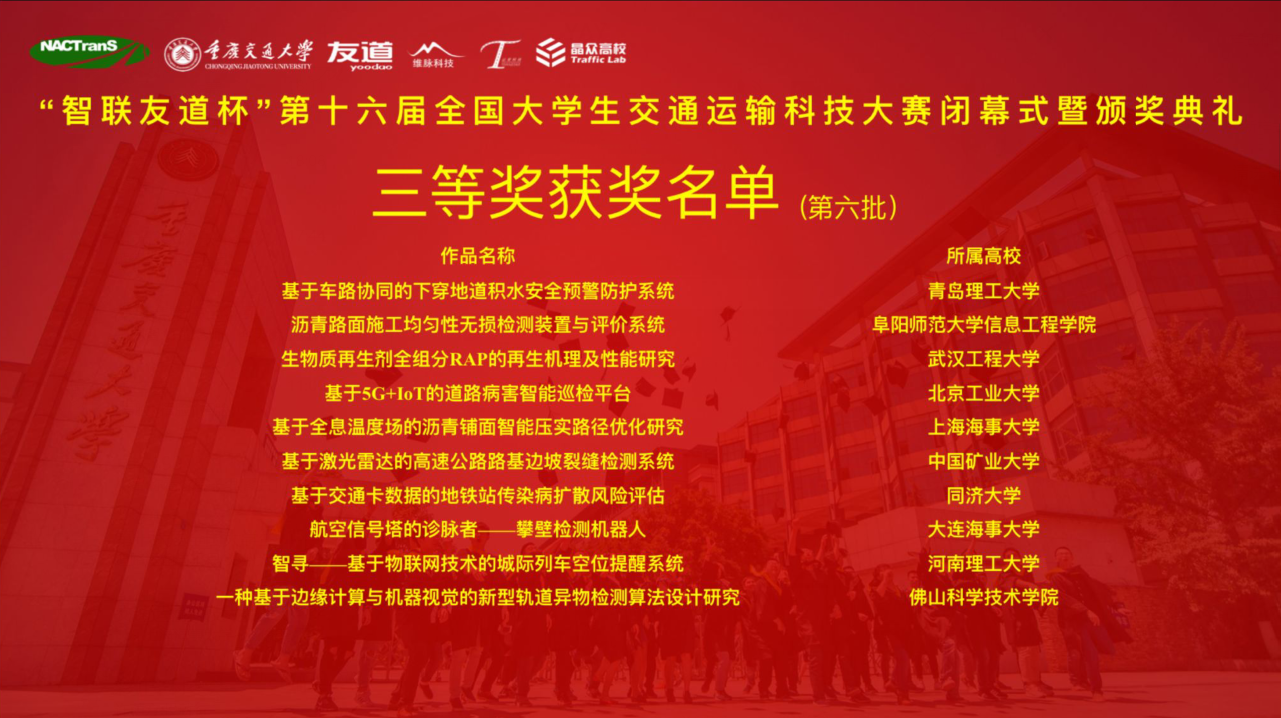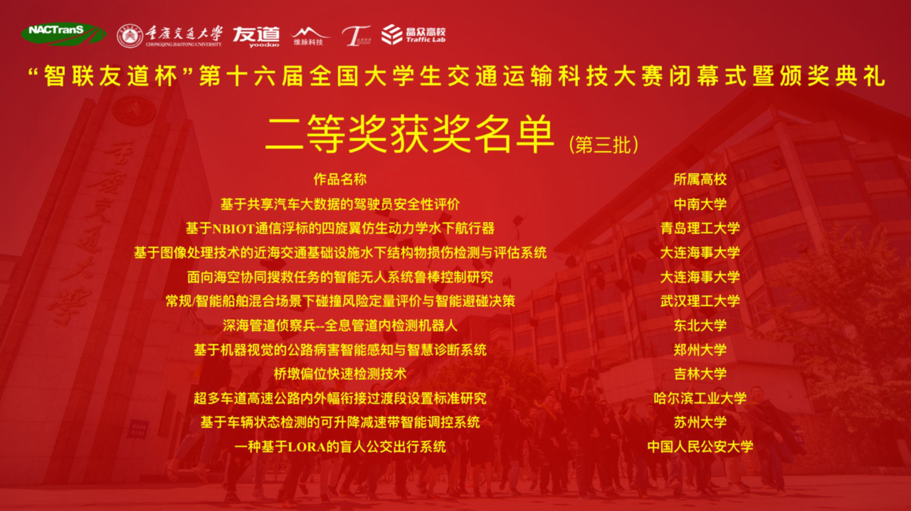 2021年7月24日-25日,“智联友道杯”第十六届全国老员工交通运输科技大赛在重庆交通大学落下帷幕。公司选派的tyc122ccVIP2支队伍入围决赛,最终取得了二等奖1项、三等奖1项的优异成绩。
