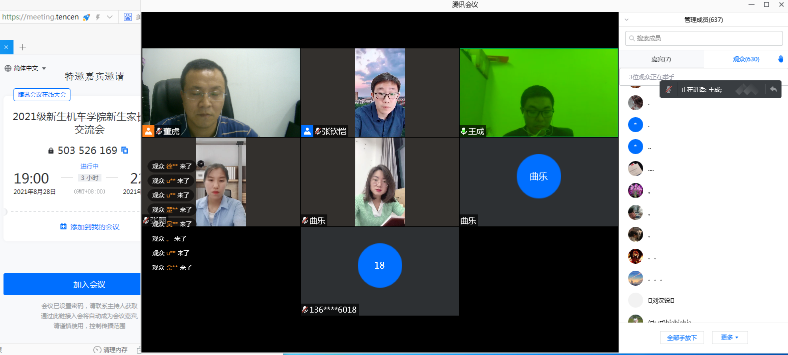 为拓宽家校联动渠道,增强育人合力,加深2021级新生家长对校情院情、人才培养、公司产品、疫情防控等工作的了解,8月28日晚,tyc122ccVIP一场老师与2021级新生和家长特殊的“见面会”在线上举行。公司党委副书记董虎、公司分团委书记王成,2021级新生辅导员张翱、张钦恺、曲乐及800余名2021级新生和家长参加了这场别样的云端见面会。
