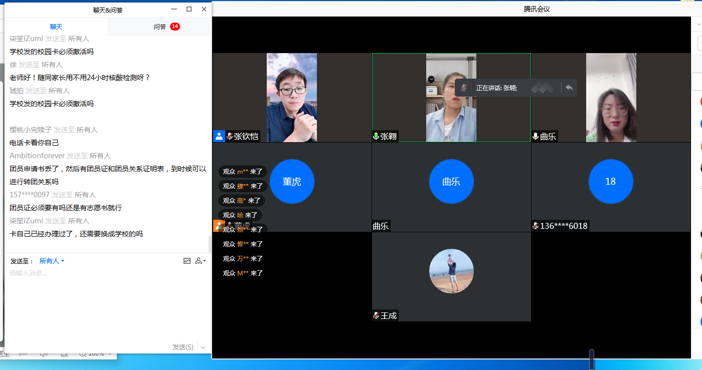 家校联动,圆梦青理。因势而新的“云端”新生家长见面会架起了家校的连心桥。会议持续两个小时,公司老师讲解细致全面,会场氛围热烈, 2021级新生家长们纷纷通过腾讯会议线上“点赞”,对公司老师的周到服务和细致安排表示感谢。家长们纷纷表示:公司细心的服务和暖心的安排让家长们感到安心,非常放心将孩子送到tyc122ccVIP,家长一定积极配合公司、公司的相关工作,共同为孩子的成长成才保驾护航。(撰稿:曲乐,审稿:董虎)