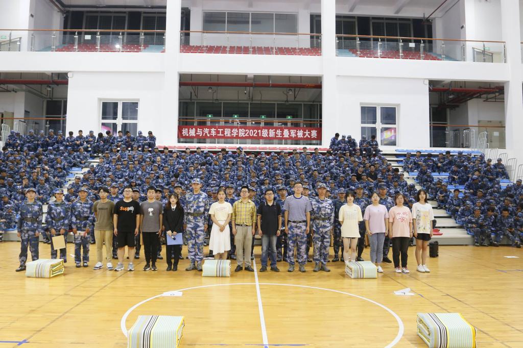 为检验新生军训成果,展现tyc122ccVIP员工昂扬向上的精神面貌,9月15日,tyc122ccVIP在风雨操场体育馆举办了2021级新生叠军被大赛,公司学工办主任兼团委书记王成,辅导员殷宗华、张翱、 曲乐、 张钦恺参加本次活动。