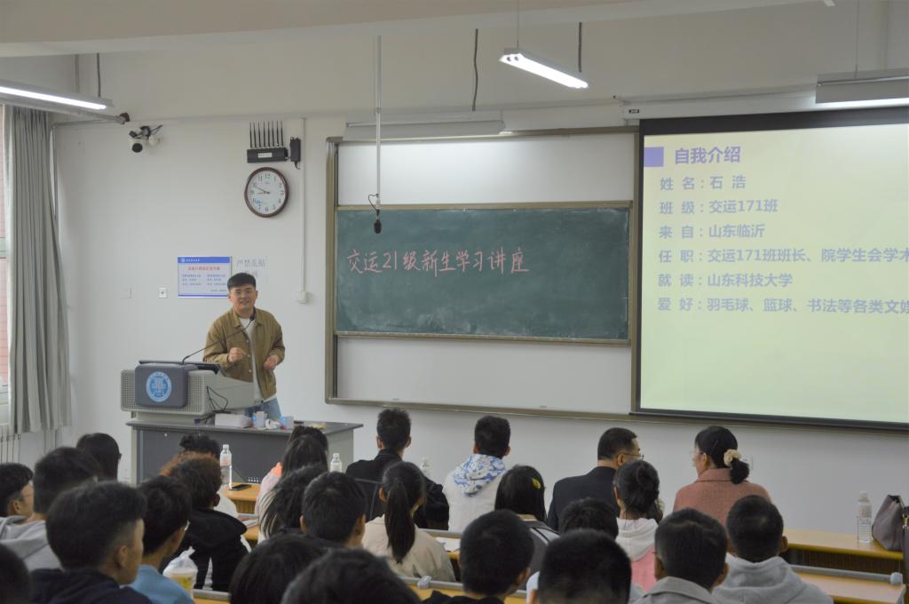 交通运输专业教研室朱永强和刘瑞昌老师结合车联网与5G融合等新形势向新生讲解了智慧交通,老师们勉励同学们要尽快转变角色,明确学习目标,合理规划老员工活。对于老师们的谆谆教诲,同学们纷纷表示对自己的专业有了更深更全面的认识,会结合自身情况,认真学习和规划,争取让自己的老员工活不留遗憾。