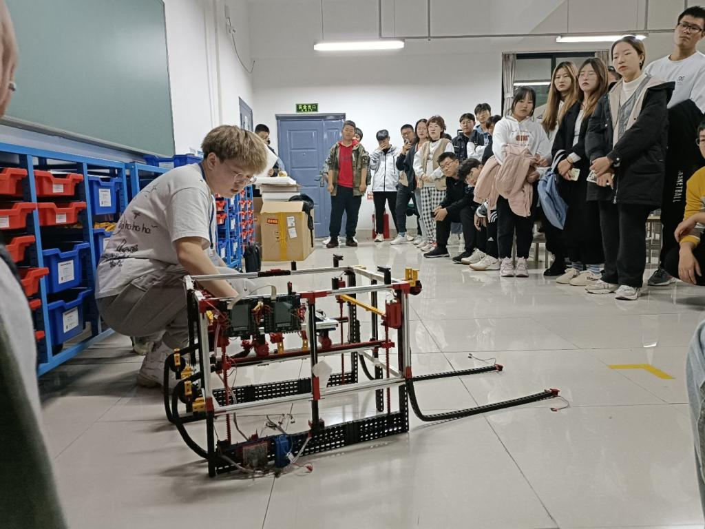 11月2日,公司举办慧鱼模型创意组合培训活动,第十八届山东省老员工机电产品创新设计大赛(慧鱼组)一等奖获得者苑均好、纪峰和李博文三名同学与200多名员工交流互动,三位获奖员工分别通过实物演示、视频展示等方式向新生介绍了慧鱼的基本知识,零件组合、慧鱼掌控板使用、慧鱼拼装、高级元件的驱动与应用等,带领低年级员工实际操作慧鱼掌控板。同学们根据慧鱼方案搭建拼接,不断向获奖员工请教交流,现场氛围浓厚。