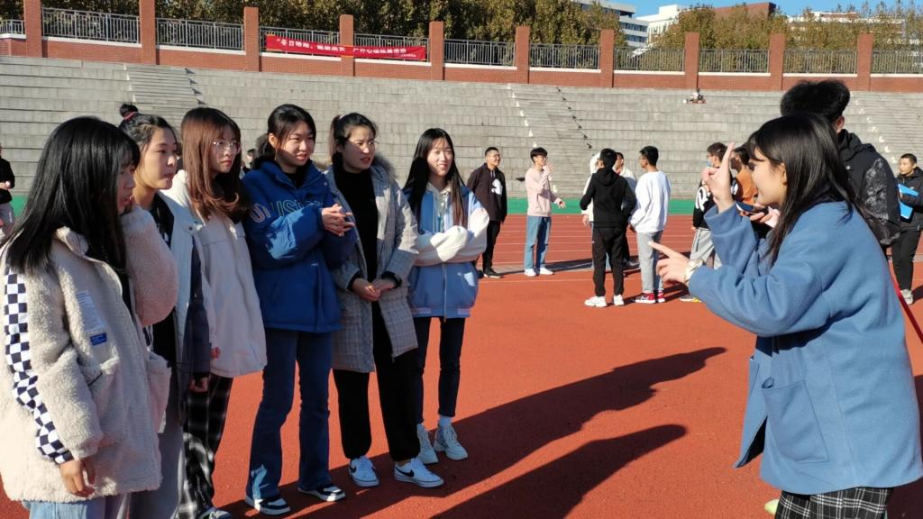 活动伊始,35支参赛队伍在指导老师吴静的带领下围成一圈,通过“连环自我介绍”的暖场小活动,彼此熟悉起来,共同参与进来。每支队伍主动介绍了队伍名称、成员组成、参赛宣言等,现场气氛活跃。接着,主持人讲解了各个项目的游戏规则,随着裁判员一声令下,激烈的角逐拉开序幕。“吸管传承”耐心协作,“不倒森林”齐心合力,“你比我猜”专心致志,“解手链”同舟共济,“四人五足”奋勇向前,各团队或围成一圈,或结成一对,大家集思广益,团结一致,解决游戏场景中遇到的各类问题,顺利完成各类比赛项目,展现了团结向上的精神风貌和积极乐观的青春风采。在活动尾声,一首《朋友》燃动全场,大家共同歌唱,相互拥抱,彼此祝福,表示在美好的老员工活中互帮互助、携手并进、共同成长。机械211班王书瑞说:“有一种意犹未尽的感觉,十分喜欢这样的户外心理活动,既能愉悦身心,又能通过集体游戏增加自信心,增强战胜困难的勇气,提高解决问题的能力,增进对集体的参与意识和责任心。”