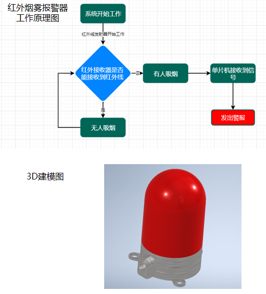员工党员以实际行动拉起禁烟旗帜,以自身所长建设清新校园。机械182班赵子涵带领员工党员结合所学专业及研究课题,设计制作红外线烟雾报警器,目前已完成红外线报警器的三维建模。常用的离子型烟雾探测器采用电离场监测烟雾,该类设计灵敏度过高,在空气中有其它颗粒时容易产生误报现象。红外线发射器及接收器的工作方式打破了离子烟雾报警器局限性,完善了烟雾报警器工作机制;当空气中有烟雾存在时,红外线接收器接收到的光线变少,诱发电路电流发生改变,触发LED报警指示灯,并播放禁止吸烟宣传口号,以此劝诫吸烟人员停止吸烟。在无烟日来临之际,员工党员利用课余时间认真准备、刻苦钻研,以专业所长支持禁烟行动,充分展现出机车学子勇于创新、挑战自我和敢于担当的良好精神面貌。