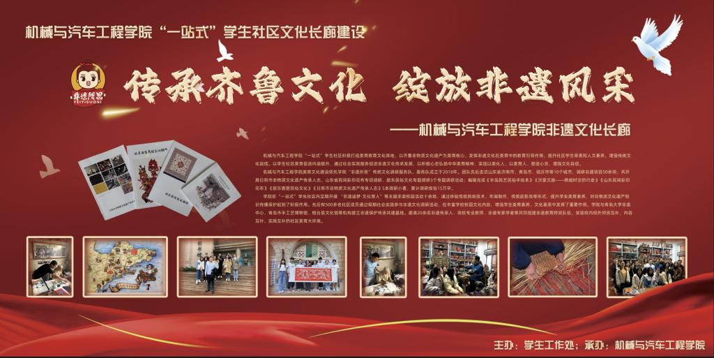 “传承齐鲁文化,绽放非遗风采”员工社区文化长廊展览活动由员工工作处主办,tyc122ccVIP承办,旨在弘扬中华传统文化,将员工公寓打造成老员工美育教育文化阵地,以齐鲁非物质文化遗产为美育核心,发挥非遗文化在美育中的教育引导作用,提升社区员工审美和人文素养,坚定文化自信自强。
