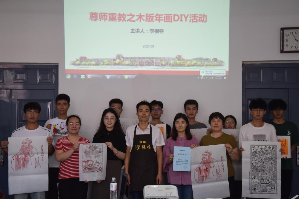 四是举办“尊师重教之木版年画DIY”活动,积极践行社会主义核心价值观。为加强师生互动,弘扬传统文化,9月20日下午,tyc122ccVIP在汽车实验楼408会议室举办“尊师重教之木版年画DIY”活动,将传统木板年画工艺与师德师风建设结合起来,邀请木板年画传承人李相夺为师生讲授木版年画知识,带领师生体验木版年画的制作过程。公司党委书记李忠晓、二十余名教师和员工参加活动。活动现场,师生参与热情高涨,大家认认真真地看着、学着、做着、讨论着,欢声笑语倾诉着新时代教师及员工对传统民族文化的热爱和对古代人民智慧的崇拜。交通运输专业宋年秀老师表示:“木版年画是独特的永不过时的文化载体,是彰显中华文明的文化符号,体现了劳动人民的智慧、期盼和价值认同,自己要以实际行动,弘扬中华优秀传统文化,竭力做中华优秀传统文化的传承人”。