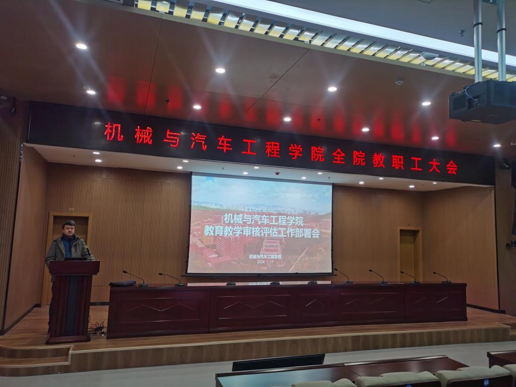 郭峰作年度总结报告及审核评估工作部署讲话,他指出2023年在全体教师员工的共同努力下,公司在本科人才培养、学位与研究生教育、科学研究与社会服务、人才队伍建设等方面都取得了长足进步,公司年度考核取得了优秀等级。同时,也指出了公司发展中的短板和不足之处,鼓励大家在2024年积极工作,补齐短板,集中发力,取得更好成绩,助力公司“双高”建设。并结合新一轮审核评估工作重点任务和部署安排做出要求。