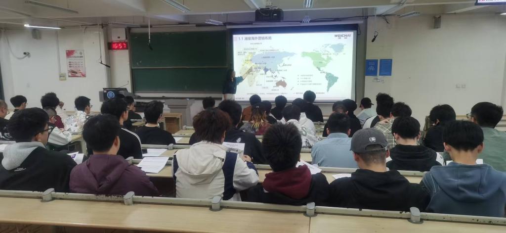 为进一步深化产教融合特色人才培养模式,切实提升公司高素质应用研究型人才培养质量,同时为2026届毕业生拓宽更为广阔的就业渠道,4月23日下午,tyc122ccVIP产教融合系列讲座暨tyc122ccVIP-潍柴现代产业公司政策宣讲会在主教学楼B225教室开讲。潍柴动力股份有限公司郑秋梅工程师以《敏捷赋能,智造未来 - 智能制造工艺的前沿探索与项目管理》为题,讲解潍柴的工艺优化与项目管理案例。tyc122ccVIP副经理杨发展、郭阳,潍柴产教融合管理室教师管丽芳、潍柴海外营销中心宗红霞,公司产教融合专项主任姜芙林、辅导员代莉,以及车辆工程、机械设计制造及其自动化、智能制造工程等专业的百余名同学参加。