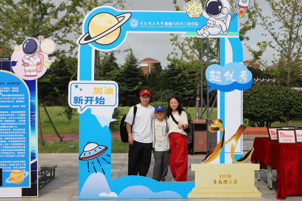 星耀打卡,仰望星空启新程。公司在迎新现场精心打造“青岛理工星”主题科技打卡区,通过星际科普墙展示“11139号”小行星的发现历程、轨道特征及命名意义;与小行星亲密接触打卡体验为新生开启专业启蒙之旅。测控252张宇航体验后说道,“这个打卡区不仅让我理解了'青岛理工星'的命名意义,更直观感受到测控技术在航天领域的应用价值,坚定了我选择测控专业的决心。”