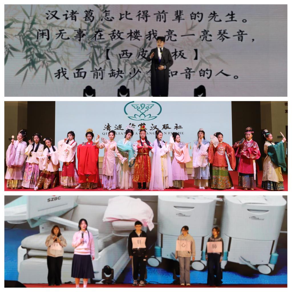 文化传承,彰显人文新韵。京剧选段韵味醇厚,胡琴锣鼓声中,演员以抑扬顿挫的唱腔与张弛有度的身段,演绎国粹之美——老生唱腔苍劲悠扬,尽显青年意气;舞蹈《灵舞锐刀》动作飒爽,舞动青春朝气;青春演讲则以真挚话语传递青年担当。古装走秀《又见红楼》、情景剧《无偿献血车》等节目,通过深情演绎,融文化底蕴于时代温度,以平凡故事传递大爱微光。