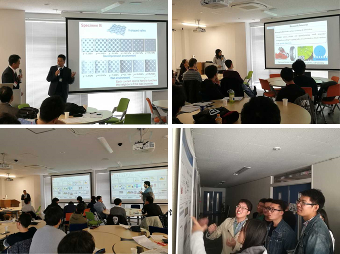在此次交流活动中,双方举办了“Surface Functions Brought by Surface Nano/microstructures”的研讨会,公司tyc122ccVIP郭峰教授、崔金磊副教授、车清论博士、柏林清博士和九州工业大学的松田健次、山村方人、James cannon三位教授分别做了精彩的学术报告,重点介绍了各自的特色研究和成果。同时,双方研究生以展板形式展示各自研究,现场进行了热烈的讨论,交流一度被推向高潮。参加报告交流的学者和员工多达80人次。会议期间,参观了该校的空间卫星实验室、摩擦研究中心实验室和热工程实验室,并进行了相关实验工作。